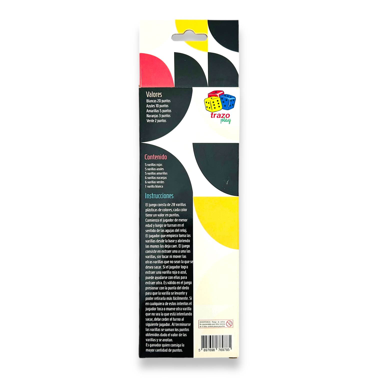 Contiene: 5 varillas rojas, 5 varillas azules, 5 varillas amarillas, 5 varillas naranjas, 5 varillas verdes, 1 varilla blanca