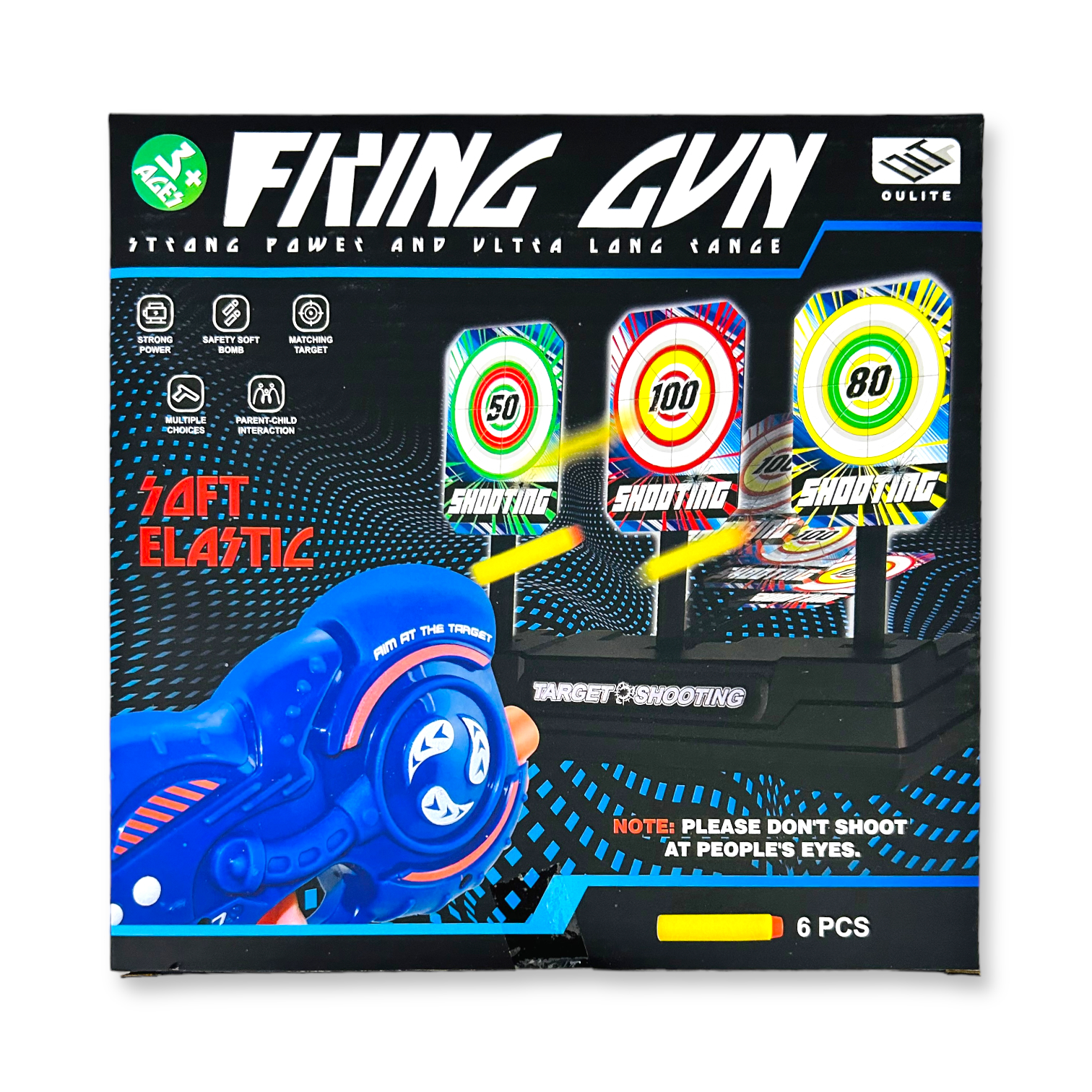 Contiene: pistola, 5 dardos y soporte con tiro al blanco
