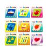 Colección: letras, números, formas, colores, vehículos, animales, objetos, comida, verduras, frutas.