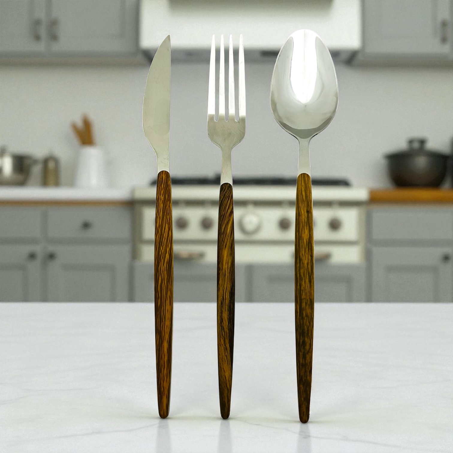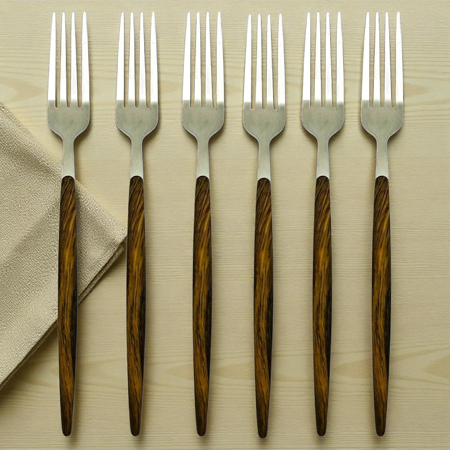 Juego de 6 tenedores mango de madera